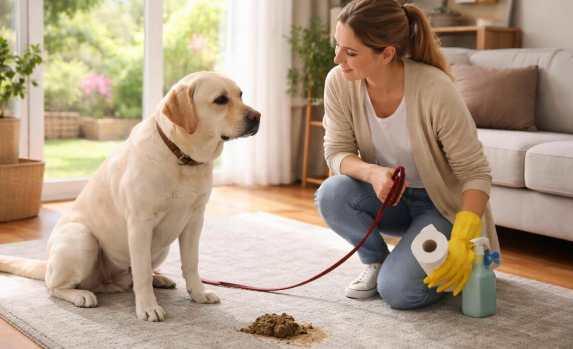 Si vous surprenez votre chien en train de faire ses besoins à l’intérieur, réagir correctement est essentiel pour ne pas renforcer le problème. Évitez les punitions sévères. Gronder simplement et nettoyer immédiatement l’accident pour éliminer l’odeur. L’emploi de nettoyants enzymatiques est conseillé, car ils éliminent complètement les traces, évitant ainsi que le chien retourne au même endroit.